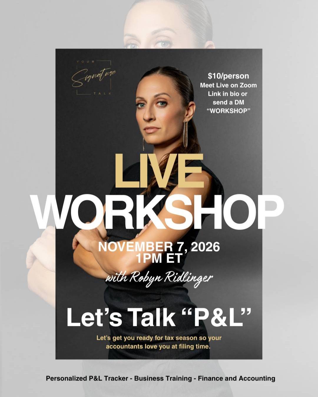 Get to know your business better and join me during my Live Virtual Workshop where I will teach you my secrets for managing my finances while being an entrepreneur. Your RSVP includes a personalized Profit and Loss Tracker.